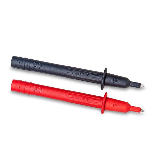 Das Extech TL744 Flachklingen-Prüfsonden-Set wurde für den Einsatz in Steckdosen entwickelt. Die Sonden sind 17,8 mm (0,7 Zoll) lang und haben eine flache Spitze von 2,5 mm (0,1 Zoll). Diese Prüfspitzen haben eine Gesamtlänge von 12,4 cm (4,9 Zoll). Der Satz ist für 1000 V, 10 A, CAT IV-600 C und CAT III-1000 V ausgelegt.