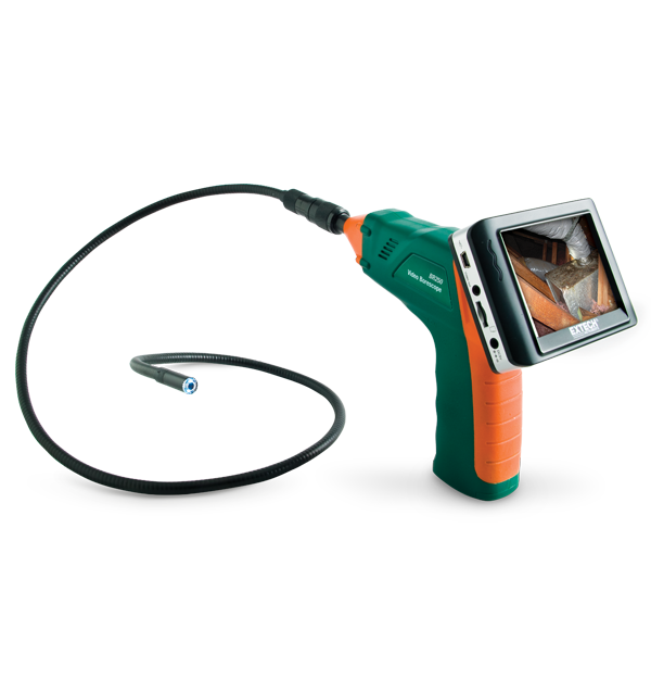 BR250 is a Video Borescope Inspection Camera with 9 mm camera diameter and 3.5 inch color TFT LCD Monitor. Ideal for Home Inspection (Inspect in walls for mold, insect infestation, electrical wire or water pipe location); HVAC ( Inspect inside ducts, behind motors and compressors); Automotive (View inside or around engines and transmissions); Industrial (Inspect weld integrity, process equipment, gears, molding machines); Aerospace (Aircraft inspections for contamination, debris, cracks or other damage), and Government (Safety and security inspections) applications. Glare-free close-up field of view. Detachable wireless color display can be viewed from a remote location up to 32 feet from measurement point. Complete with 4 x AA batteries, micro SD memory card with SD adapter, USB cable, extension tools (mirror, hook, magnet), video cable, AC Adapter (100-240V, 50/60Hz), magnetic base stand, and hard case.