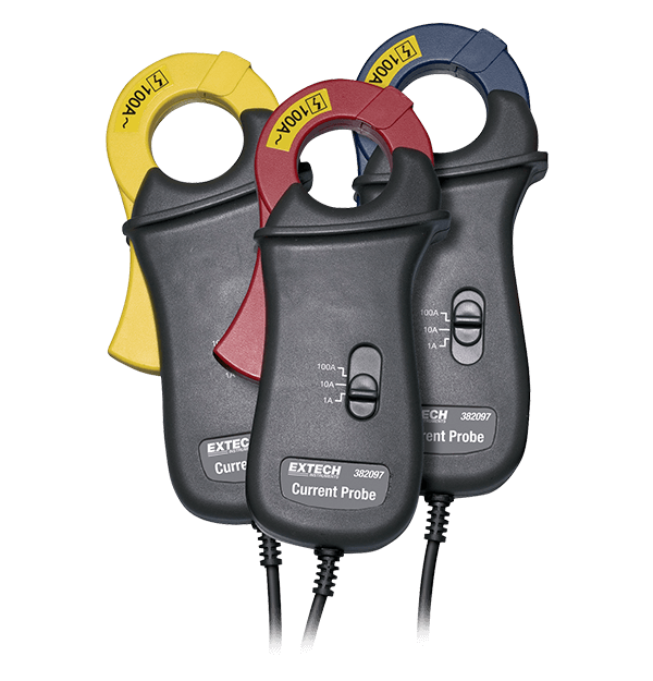 Extech's 382097 is a set of 100A Current Clamp Probes for Models 382095 and 382096 Power Analyzers. This clamp probe set features three probes with a 30 mm (1.2 in) clamp jaw. The 382097 comes with a two year warranty.