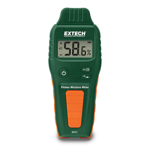 Use Extech’s MO53 Pinless Moisture Meter for non-invasive measurements on wood and other building materials with virtually no surface damage. The depth of measurement is approx 20 mm (< 0.75 in). It is easy to operate with display icons that indicate the levels of moisture content plus an audible alert feature. The MO53 is ideal for building restoration projects and applications where moisture detection on floors, tiles, and under carpets is critical. A must-have tool for analyzing the after effects of water leakage behind walls and in ceilings.