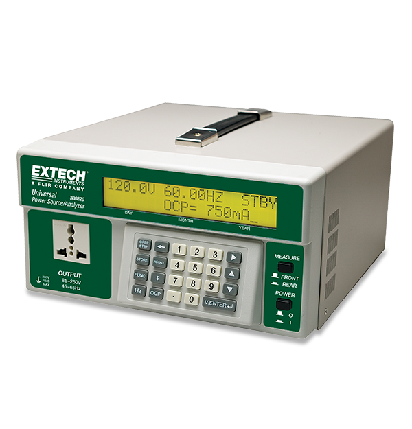 The Extech 380820 is a Universal AC Power Source with an AC Power Analyzer. It allows for standby power measurement (10 mW to 100 W) for PCs, LCD TVs, and AC adaptor and chargers. It features power quality measurements, a cost function that can calculate cost per day, month, and year, 99 memory locations for preset voltage and frequency output settings, and user-programmable over current protection. Complete with AC power cord, RS-232 to USB cable, and software.