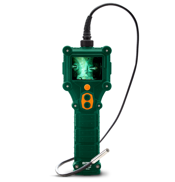 La Extech BR300 es una cámara de inspección con videoboroscopio impermeable (IP67). Su cabezal de cámara de 8 mm de diámetro viene con 4 lámparas LED brillantes incorporadas para áreas con poca luz. Otras características incluyen: un zoom digital de 2x para visualización de cerca y un indicador de batería baja, todo visible en un monitor LCD TFT en color de 68 mm (2,7 pulgadas). Incluye sonda de cámara y cable de cuello de cisne flexible de 1 m (39 pulgadas), 4 baterías AA y estuche rígido.