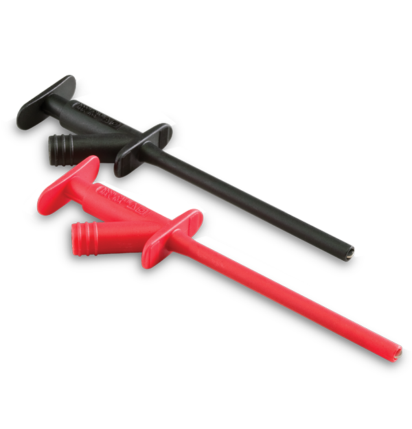El TL741 de Extech es un juego de dos pinzas de alta resistencia con garfio por émbolo. Diseñados para sujetar cables o conductores de componentes, pueden soportar hasta 1000 V y 10 A. Cada clip tiene un diámetro de sujeción de 2 mm (0,08 pulgadas) y una longitud total de 140 mm (5,5 pulgadas).