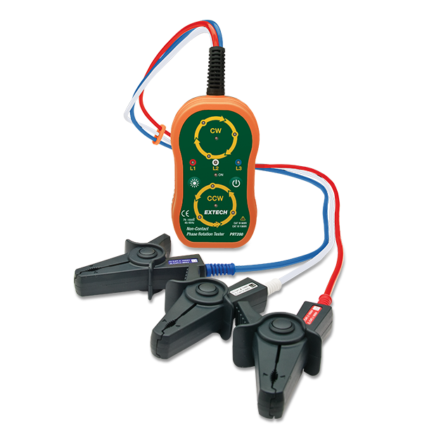El Extech PRT200 es un probador de secuencia de fase sin contacto con un voltaje de entrada de 75 a 1000 VCA y un rango de frecuencia de 45 a 65 Hz. Este probador cuenta con una pantalla LED que indica si cada fase está activa y la orientación de esa fase. Además, suena un pitido intermitente cuando se detecta la fase correcta y uno continuo si se invierte la fase. El interruptor de brillo LED alto/bajo ajustable facilita la toma de medidas en zonas con poca luz o bajo el sol, mientras que la clasificación de seguridad CAT IV de 600 voltios y las pinzas de contacto anchas totalmente aisladas hacen que sea adecuado para aplicaciones industriales. El PRT200 viene con una garantía de 1 año, 3 cables de prueba integrados de 30 in con pinzas de contacto grandes codificadas por colores, 4 baterías AA y un estuche.
