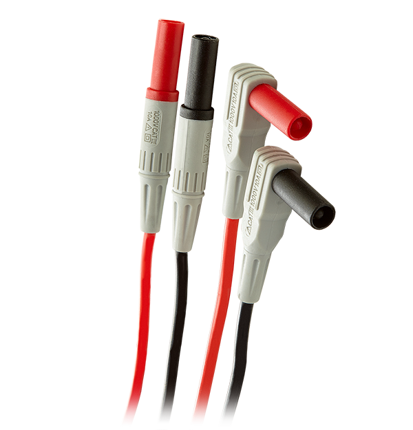 The Extech TL726 Double Molded Silicone Test Lead Set are right angle and straight end flexible leads with shrouded banana plugs. The overall length of the test leads are 160 cm (63 in). They all have a protective collar and insulated sleeves. These test leads are rated at 1000 V, 10 A, CAT IV-600 V and CAT III-1000 V.