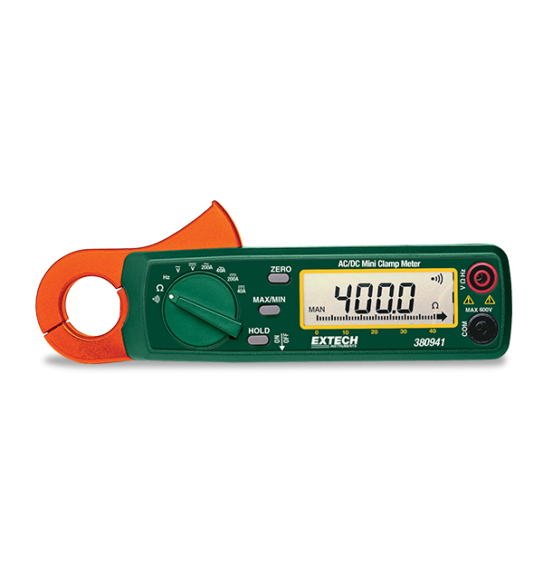 Le modèle Extech 380941 compact est un mini multimètre à pince de 200 A CA/CC avec une mâchoire de petit diamètre conçue pour atteindre de petites surfaces tout en offrant une résolution de 10 mA (CC) et une sensibilité à très faible courant. Ce mini multimètre à pince est utile pour le dépannage des tâches d’entretien d’usine, d’électricité, de CVCA et de télécommunications, ainsi que pour les réparations d’électricité résidentielle, d’entretien de flotte, marines et de motocyclette. Le modèle 380941 est doté d’une cote de sécurité CAT III 300 volts et d’une garantie d’un an. Comprend piles et manuel.