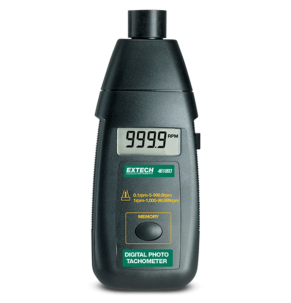 Avec le 461893, vous pouvez effectuer des mesures sécuritaires et sans contact du régime (5 à 99 999 tr/min) des objets rotatifs en pointant le laser intégral (distance cible de 15 cm/6 po) vers la bande réfléchissante placée sur l’objet à mesurer. La touche mémoire conserve le dernier relevé et rappelle l’affichage des relevés min/max. Comprend 4 piles AA, 0,6 m (23 po), étui de transport et manuel de l’utilisateur.