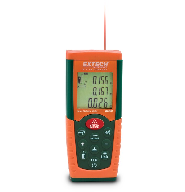 The easy-to-use DT300 Laser Distance Meter accurately measures from 2" to 197' and can calculate area and volume. The integrated Pythagoras theorem also allows for the user to take indirect measurements. Other features include continuous measurement function with Min/Max distance tracking updates every 0.5 seconds, addition/subtraction, and front or rear edge reference. The DT300 has a double molded housing (IP54), low battery indicator, auto power-off function and comes complete with a carrying case and 2 AAA batteries.