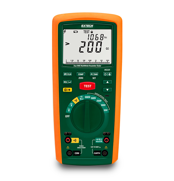The Extech MG325 combines a 200GΩ/1000 V high range insulation tester with a full-featured true RMS multimeter in a single, compact instrument. CAT IV safety rating ensures the highest level of protection.