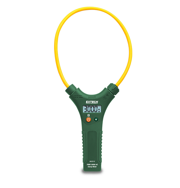 Le modèle Extech MA3018 est une pince ampèremétrique flexible CA True RMS de 3 000 A. Le modèle MA3018 est équipé d’une pince flexible de 45,7 cm (18 po) avec moniteur LCD. Les valeurs True RMS donnent des mesures précises d’ondes bruyantes, déformées ou non sinusoïdales. Fourni avec deux piles AAA. Conforme UL avec une tension nominale de sécurité de 600 V CAT IV.