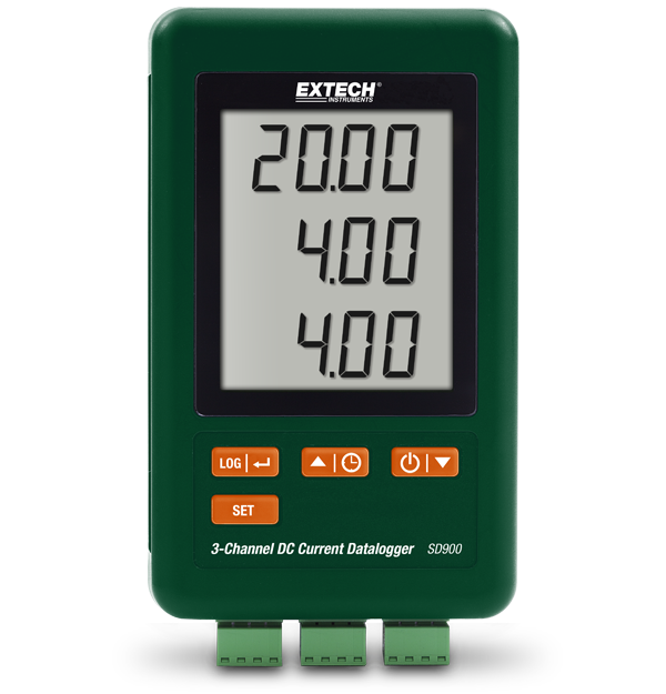 Extech's SD900 allows technicians to easily monitor and record DC mA values from 3 external sensors, transducers, and other sources using one meter. It also stores the time and date of when readings are taken. The logger features a large triple LCD display and records data on an SD card in an Excel®-ready format for easy transfer to a PC for analysis, trending, and archiving. Complete with six AAA batteries, SD memory card, Univeral AC Adaptor with multi-plugs (US, EU, UK, AUS), 3 input connect sockets, and mounting bracket.
