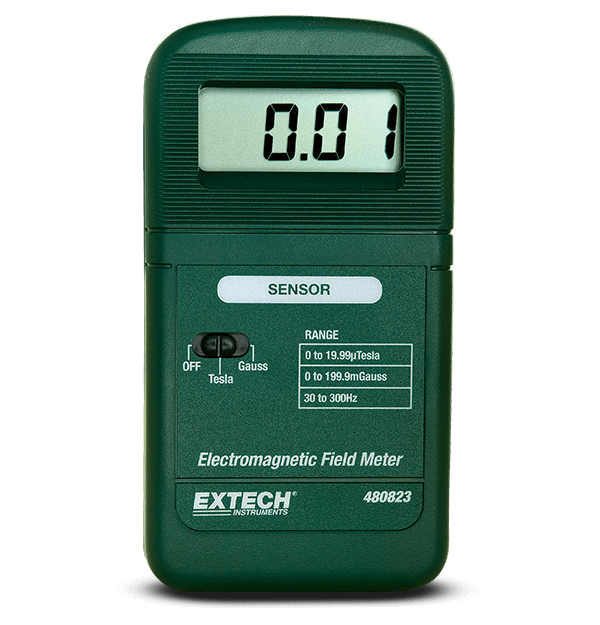 The Extech 480823 EMF/ELF meter allows you to measure electromagnetic field radiation levels from fans, electrical appliances, wiring, and power lines. Featuring a 1.3 cm (0.5 in) LCD display and a sampling time of 2.5 times per second, you can be assured of easy and accurate measurements. Readings available in both mill gauss or micro Tesla. Battery included.